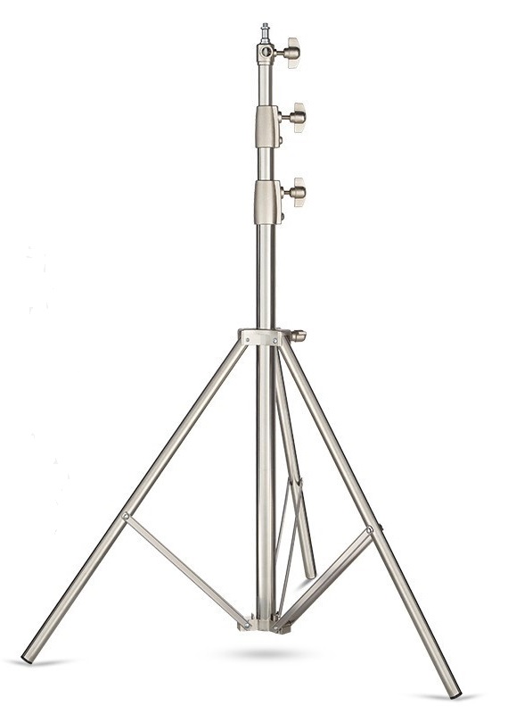 Light Stand de acero inoxidable, robusto y estable, con sistema interno de amortiguación de impactos.
