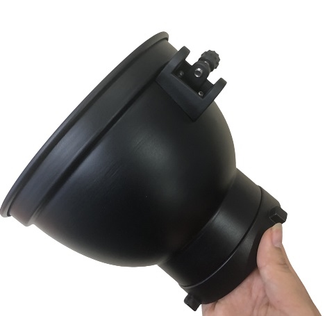 Reflector metálico con soporte para paraguas difusor.